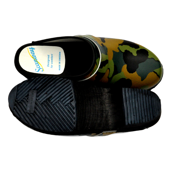 This Camo printed style clog is made with a smooth quality leather upper. The base is the original Standard wooden sole, which is shaped to offer support and even weight distribution. Strongly recommended for nurses, hair designers, estheticians, chefs, teachers etc.