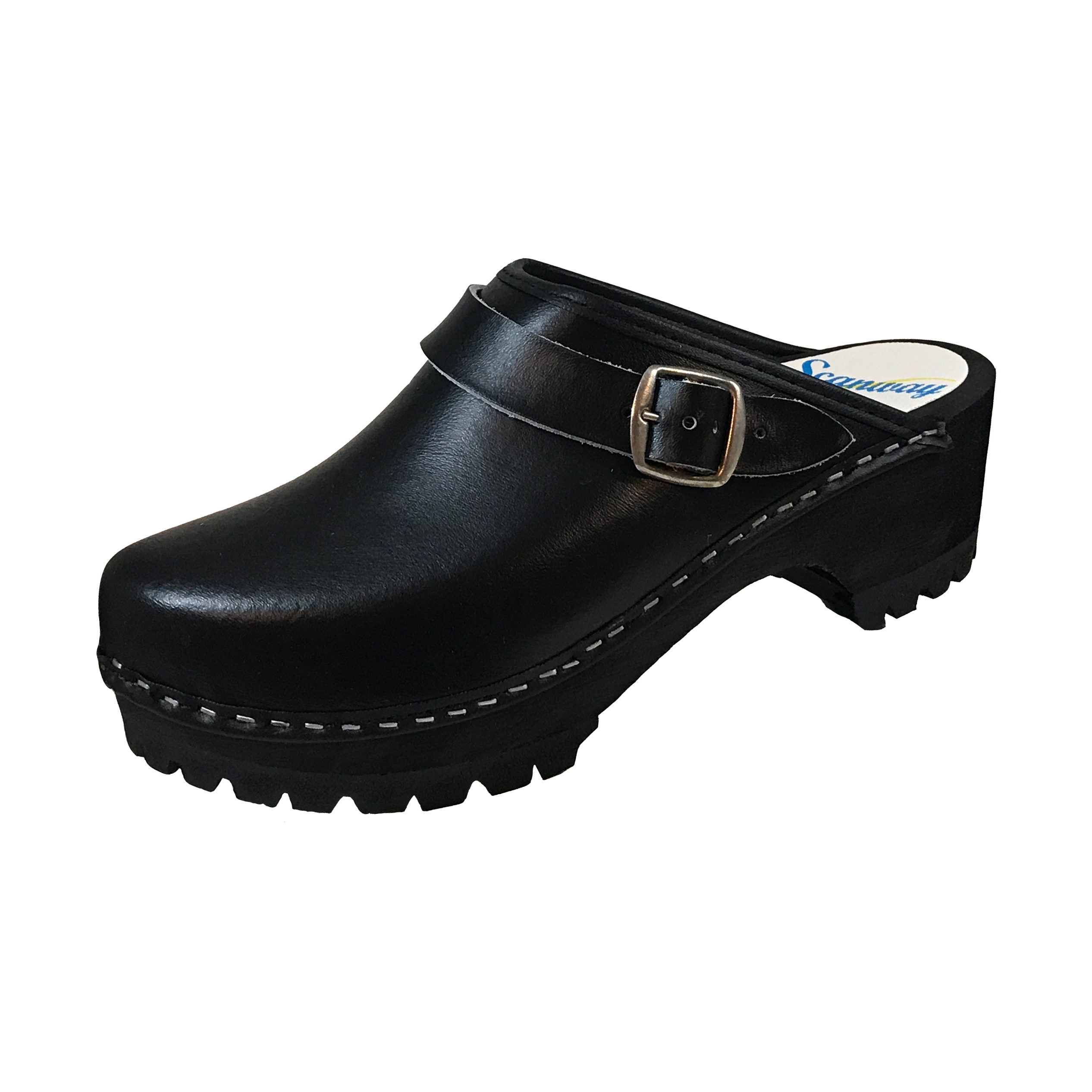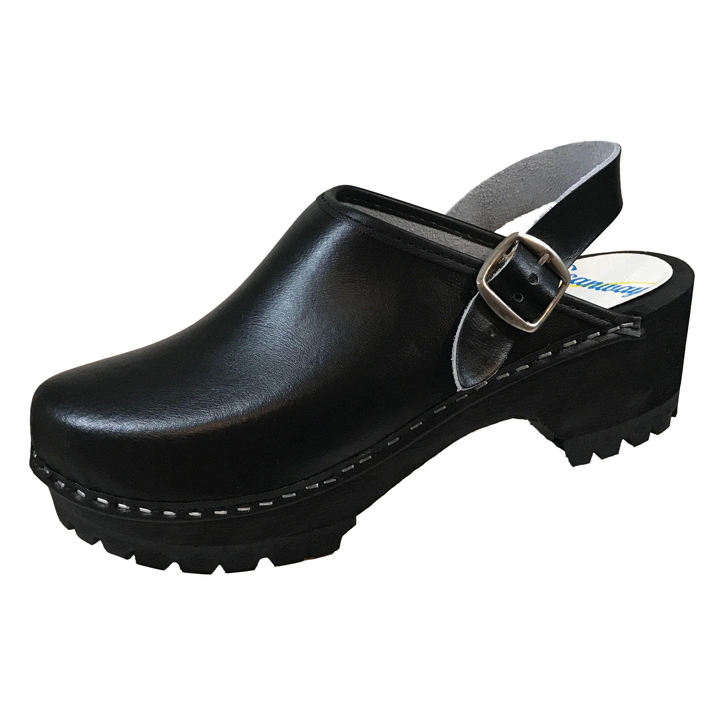 The Tractor sole is made of wood for a moist absorbing natural feeling. It has a thicker rubber layer at the bottom for added shock absorption, which is patterned underneath to provide a safer grip on a slippery surface. On the inside it provides extra support for a high arch. The front is molded to allow your toes to maintain their natural shape and provide a better fit. It is carefully shaped to offer support and even weight distribution for your body, helping to eliminate the lower back strain and foot discomfort that come from excessive standing.